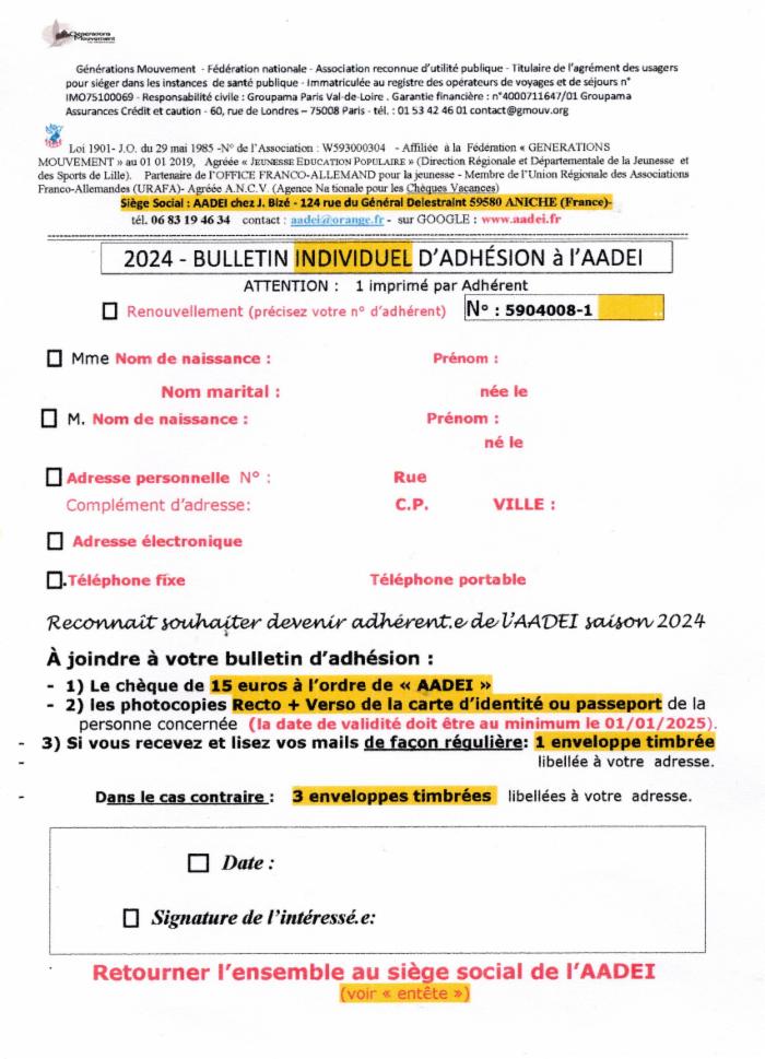 Ci dessous: bulletin individuel d'adhésion 2024 à l'AADEI